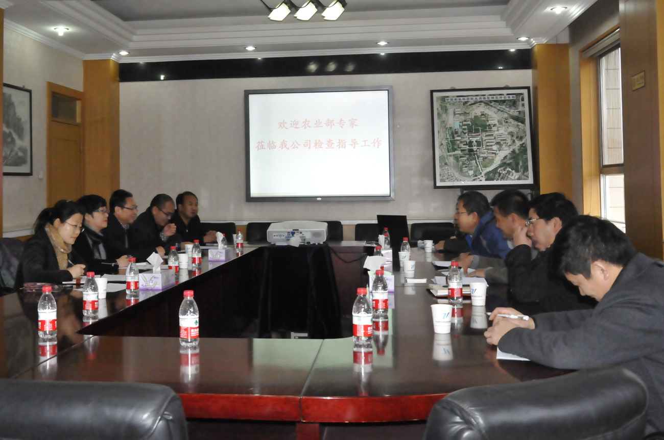 2014年11月15日,农业部兽药GMP工作委员会检查组专家徐肖君、万建青、杨承槐一行三人在甘肃省兽医局副局长周生明的陪同下,根据全国秋季重大动物疫病防控工作需要和农业部工作部署,对我公司重大动物疫病疫苗生产、检验情况进行了飞行检查。张云德总经理、王超英总经理助理、杨进才总经理助理、质量管理部刘西兰部长、生产部刘学荣部长及各部门相关负责人全程陪同飞检。