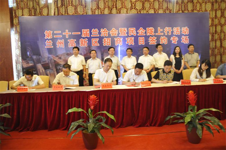 2015年7月7日下午,第二十一届兰洽会兰州高新区招商项目专场签约仪式在兰州高新区雁滩园区胜利召开。省科技厅副厅长巨有谦、兰州市副市长戈银生及相关部门负责人,各方企业代表及高新区二级园区负责人、各部门和驻区服务单位负责人,省市新闻媒体等170余人参加了签约专场,签约仪式由高新区管委会罗珽副主任主持,管委会李虎林主任致辞。